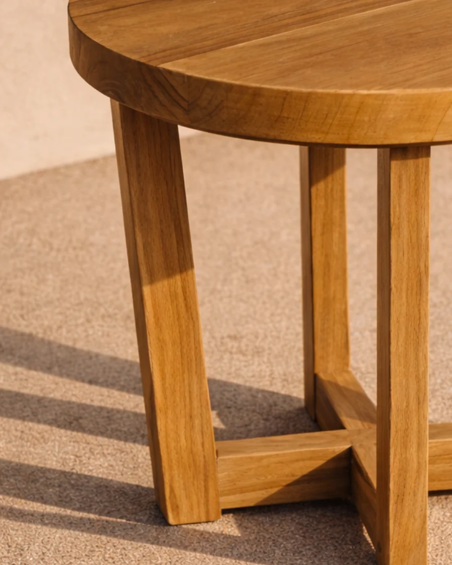 Mesa auxiliar pequeña de jardín en madera de teca maciza