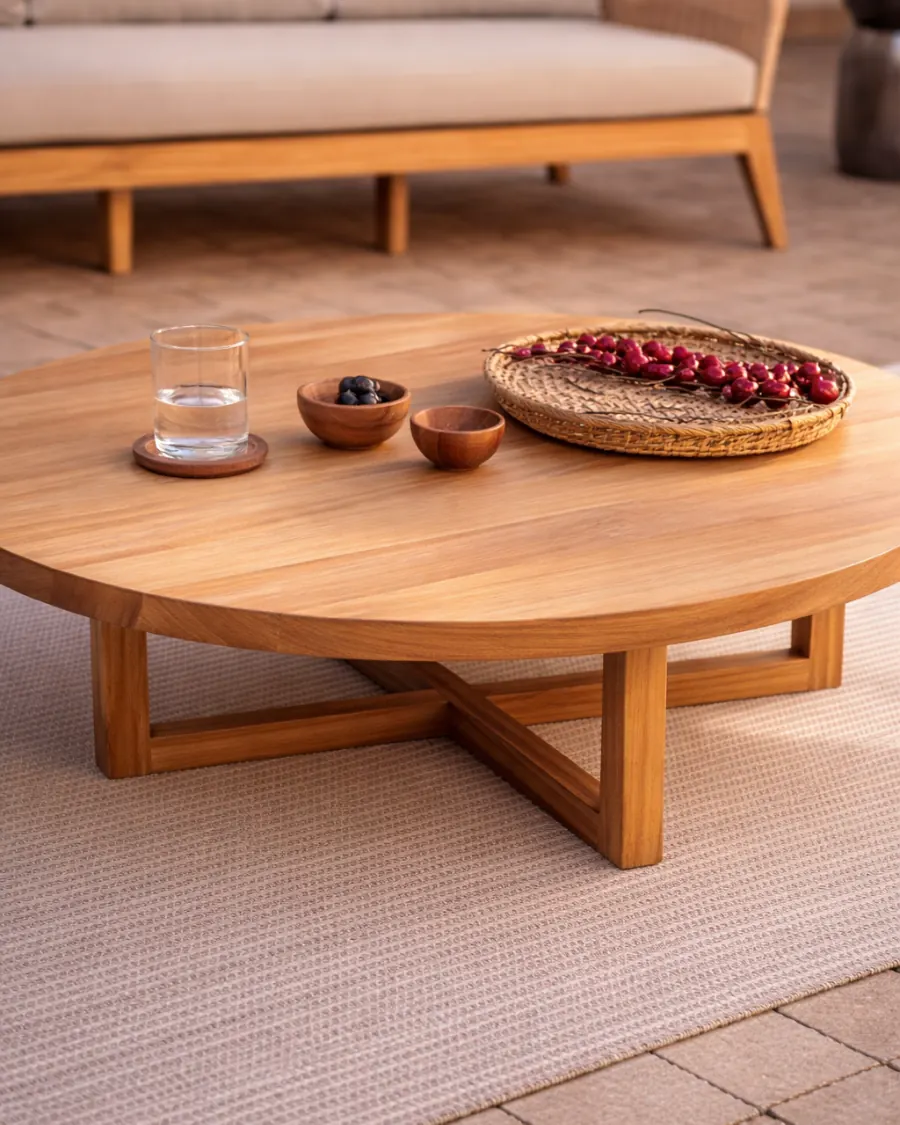 Mesa de centro de jardín en madera de teca maciza