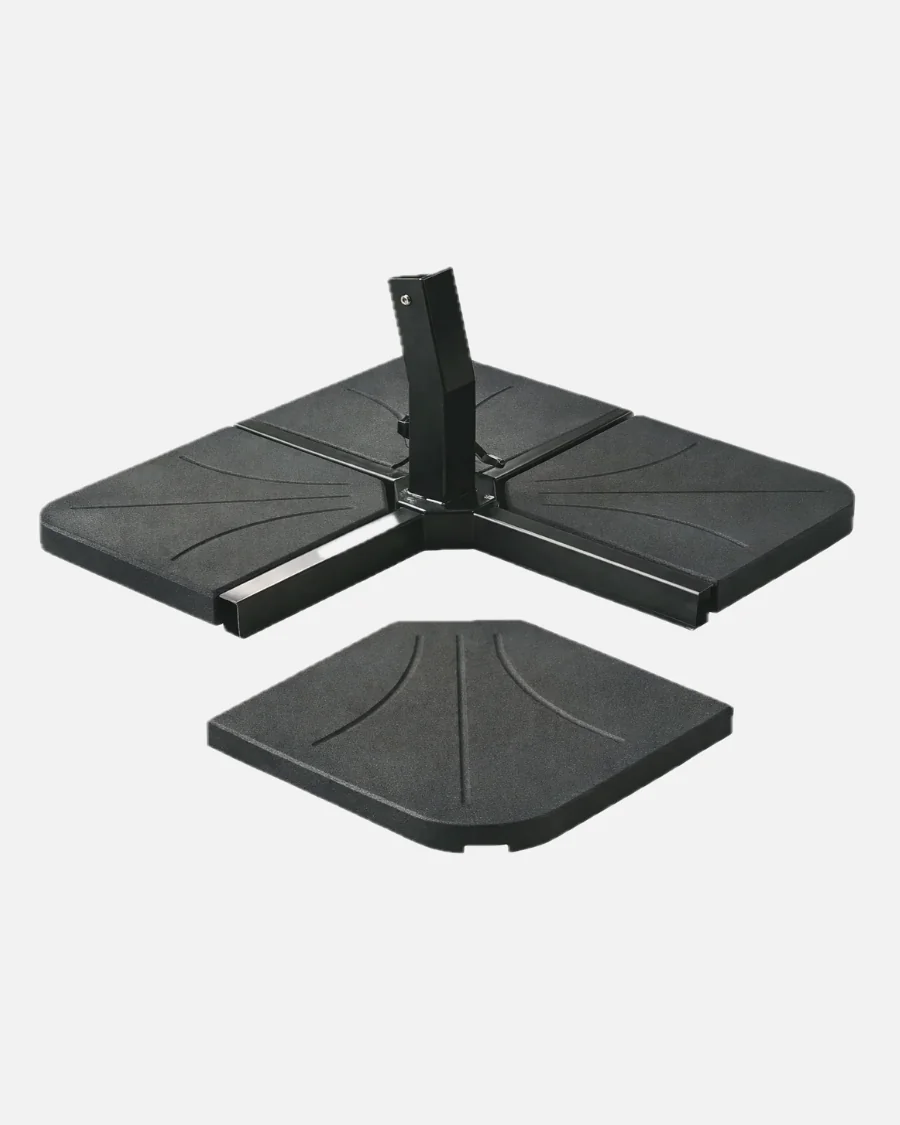 · Su formato tipo baldosa permite integrarla fácilmente en conjuntos modulares o utilizar varias unidades para reforzar la sujeción en parasoles de mayor tamaño.