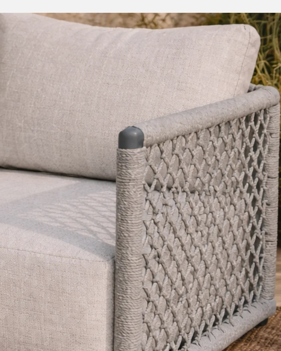 Sillón de aluminio y cuerda sintética gris con cojin waterproof greige