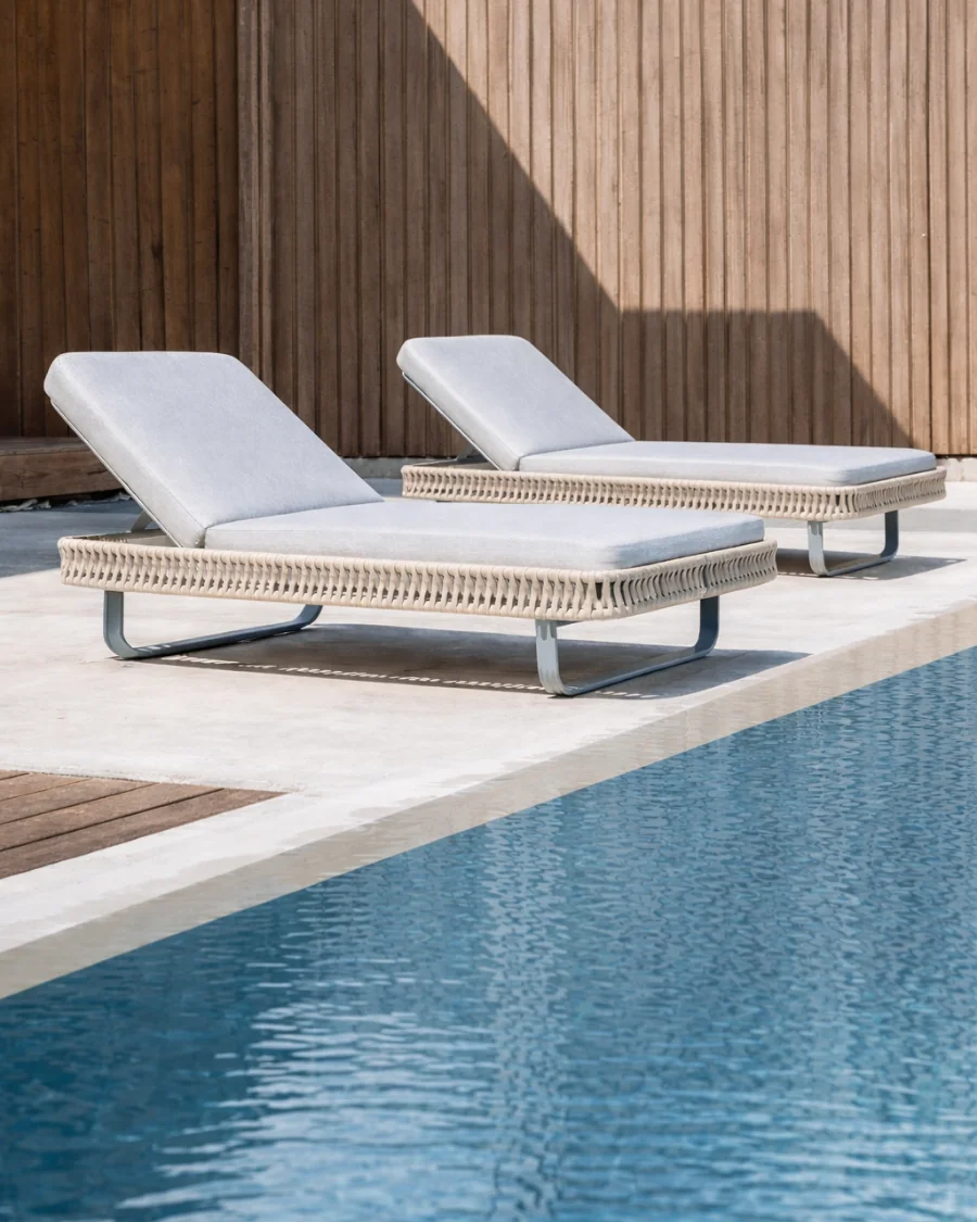 Diseño bajo y estilizado, ideal para zonas de piscina y terrazas modernas.